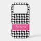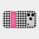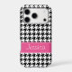 A preppy pink and black houndstooth design is featured on this iPhone case. Modern and cute -- Perfect for a girly tween or teenager. Easily personalize with your name!