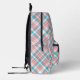 A fun backpack featuring a pink blue and white preppy plaid pattern which is perfect for back to school.