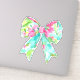 This cute coastal inspired vinyl sticker features a large bow in preppy shades of pink and green. Great for a gift bag!