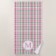 Preppy Pink and Green Plaid Monogram Beach Towel