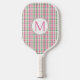 Preppy Pink and Green Plaid Monogram Pickleball Paddle