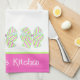 This preppy personalized kitchen dish towel features bright pink and green stripe bows. Personalize with your choice of name or special text. Fun for any occasion. Great for gift bags and housewarming parties.