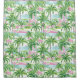 This fun shower curtain features a preppy pink and green tropical palm tree pattern.