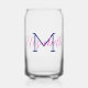 These cute can glasses feature a preppy monogram in classic shades of pink and navy blue. Personalize with your choice of name and initial.