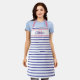 Preppy Pink and Navy Blue Stripe Simple Monogram Apron