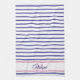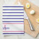 Preppy Pink and Navy Blue Stripe Simple Monogram Kitchen Towel
