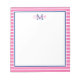 Preppy Pink and White Stripe With Navy Monogram Notepad