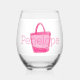 Preppy Pink Beach Bag Personalized Stemless Wine Glass