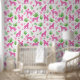 This Preppy pink cheetah wallpaper combines a preppy style with a fun, bold cheetah print. It has a white background with vibrant cheetahs in hot pink with lush green plants. It's stylish, adding personality to your space. It also feels modern and chic, while still playful and energetic.