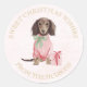 Preppy Pink Christmas Dachshund Sml Round Stickers