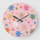 Preppy Pink Colourful Flower Heart Y2K Pattern Large Clock