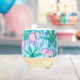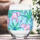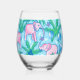 Preppy Pink Elephant Palm Tree Stemless Wine Glass