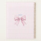 This planner has a Preppy Chinoiserie pink and white gingham pattern and a label design where you can personalize with your name. The back flap has a pink gingham bow with the year.