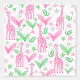 This wallpaper features fun and stylish pink giraffes alongside flowers and lush leaves. The design exudes a modern and preppy vibe while retaining a playful and energetic feel.