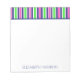 This cute monogrammed notepad features bright stripes in preppy shades of pink, green, navy blue and white. Personalize with your choice of name.