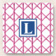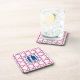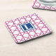 Preppy Pink Navy Trellis Bamboo Pattern Monogram Coaster