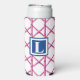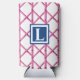 Preppy Pink Navy Trellis Bamboo Pattern Monogram Seltzer Can Cooler