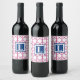 Preppy Pink Navy Trellis Bamboo Pattern Monogram Wine Label