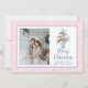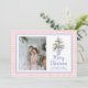 Preppy Pink Ornaments Watercolor Christmas Tree Holiday Card, custom photo Christmas card editable text.
