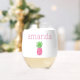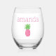 Preppy Pink Pineaaple Personalized Stemless Wine Glass