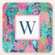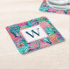 Preppy Pink Teal Navy Blue Pineapple Monogram Square Paper Coaster