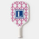 This monogram pink bamboo trellis pickleball paddle is stylish for the pickleball court. Personalize with a letter. This pink trellis bamboo pattern can be found on more items in my shop, PageCreativeDesigns.