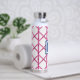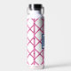 Preppy Pink Trellis Bamboo Pattern Navy Monogram Water Bottle