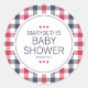 Preppy Red, White & Blue Plaid Baby Shower Classic Round Sticker