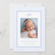 Share your news with this modern yet timeless birth announcement. Featuring a clean monogram, dainty doily frame, and a delicate pinstripe background, this minimalist card allows your newborn's photo to take center stage. The versatile back includes space for multiple pictures and a sweet message, making it perfect for use as both a birth announcement and a baby shower thank you card. Available in multiple colorways to perfectly suit your little one's style.
