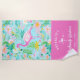 This can beach towel design features a preppy flamingo summer print. You can personalize with the bride's name, year and location. These towels are perfect for a bachelorette party or girl's weekend.