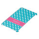 A trendy teal blue and white polka dot design with pink stripe is featured on this iPad Mini case. Preppy and cute -- Easily personalize with your name!