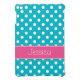 Preppy Teal Blue and Pink Polka Dots Personalized iPad Mini Case