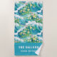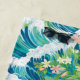 This can beach towel design features a preppy tropical beach waves print with flowers floating on the waves. You can personalize with your Family name or your Air BNB name. These towels are perfect for a beach vacation home or rental.