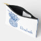 This cute and preppy personalized zippered pouch features a tropical pineapple in classic navy blue on white on the front and white pineapple on navy blue on the back.  Personalize each side with your choice of name or special text.  Great for personalized party favours and gift bags.