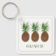 This cute keychain features tropical pineapples in watercolor shades of green and brown. Personalize with your choice of name or special text on the front and contact information on the back. Fun for gift bags or a girl's weekend!