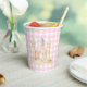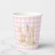 Preppy Watercolor Beach Party Paper cups. Sand castle on a pink gingham paper cups