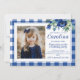 Preppy Watercolor Navy Blue Florals Gingham Invitation template, customize text to make it your own. Edit the photo with your own photo.