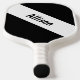 Bring some preppy charm to your pickleball game with this white and black customizable paddle. Add a personal touch by putting your own name or other text down the centre of the white diagonal stripe on front. The back features a geometric design in the same stylish colours.