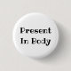 Sarcastic office humour pin button with “Present in Body” quote. For those physically at work but mentally miles away, this pin says it all!