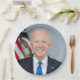The photograph captures a moment in time during the Presidency Joe Biden the 46th President of the United States. Sunlight streams through a window, casting a warm glow on the figure of an Biden standing confidently in the centre of the frame. Standing tall with arms straight, a gesture that suggests both authority and a hint of casual ease. --- Mr. Biden is dressed impeccably in a dark suit, the crisp fabric contrasting sharply with the clean lines of his white shirt. A blue adds a touch of personality to the ensemble. --- A glimpse of patriotism is evident in the background. An American flag stands proudly on a pole to the man's left, its vibrant colours a subtle counterpoint to the cool blue of the wall behind him. --- Reelection soon to come for President Biden is the focal point of the image. His short white hair frames a kind face, etched with the lines of a life well-lived. A warm smile plays on his lips, conveying a sense of confidence, wisdom, and perhaps a hint of amusement.