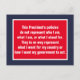Postcard designed for mailing. Tell people that President Trump is not putting forth policy, whether it's immigration, taxes, tariffs, anti-LGBTQ, or otherwise, that reflect you. Front: The President's policies do not represent who I am, what I am, or what I stand for. They in no way represent what I want for my country or how I want my government to act.