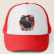 Make Anime Great Again! In this dramatic and intense scene, President Trump clad in a dark blue samurai outfit with a vibrant red belt stands defiantly. With blonde hair flowing and a golden-hilted sword held high, the warrior's triumphant pose exudes strength and determination. Looming behind, a fearsome red demon with sharp teeth and menacing horns emerges from a swirl of flames and smoke, enhancing the sense of epic confrontation.