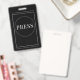 Template metallic gold and black Press Event Badge. Replace with your own event name and date. This version comes with a lanyard, but you may choose your style of attachment that includes, lanyard, metal clip or retractable, or no attachment.