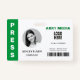 Press employee ID, logo and barcode green photo template badge. Personalize this journalist photo ID card badge with your name, ID, title, company logo and barcode. Add additional information on the back.