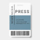 Press worker ID mass media employee photo dusty blue Badge. Personalized Press ID - an elegant badge with your newspaper or news channel logo, photo, name, job title, and more if required.