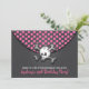 Une invitation mignonne et branchée parfaite pour la fête de la fille ado glamour ! L'invitation a des pois et une fleur mignonne. L'invitation est aussi rose et noir et sur le dos est un faux zipper qui fait pour une invitation amusante