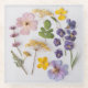Aesthetic, pretty, pressed spring flowers in glass coaster.