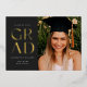 Celebrate your graduation in style with this modern graduation announcement and invitation. It features the word GRAD in a stylish sans serif pressed with foil on the front on a dark background, along with space for a photo. The back of the invitation has space for a second photo as well as room for all of the details of your graduation party.