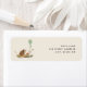 Illustration d'un hérisson tenant un ballon vert sur une corde décorée de verdure d'eucalyptus. Le hérisson est assis sur la feuille dans l'herbe à côté des champignons aux abeilles. Thème "Prêt à pop".