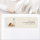 Illustration d'un hérisson tenant un ballon bleu sur une corde décorée de verdure d'eucalyptus. Le hérisson est assis sur la feuille dans l'herbe à côté des champignons aux abeilles. Thème "Prêt à pop".